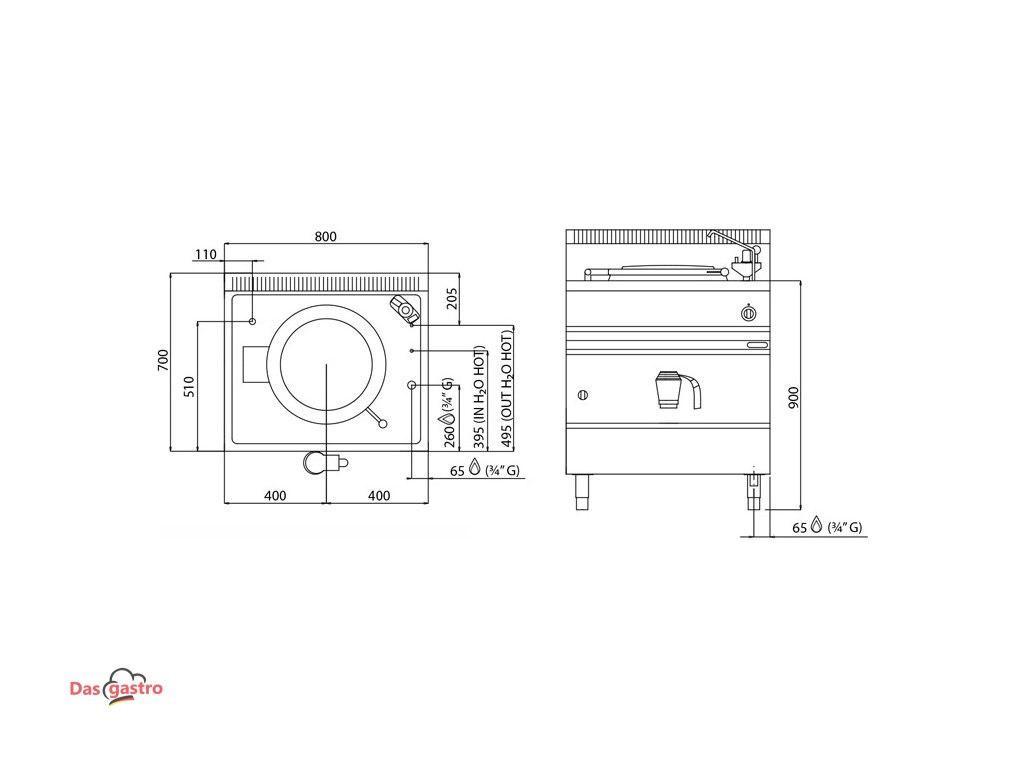 - Kohútik a výtok na plnenie a vypláchnutie nádoby