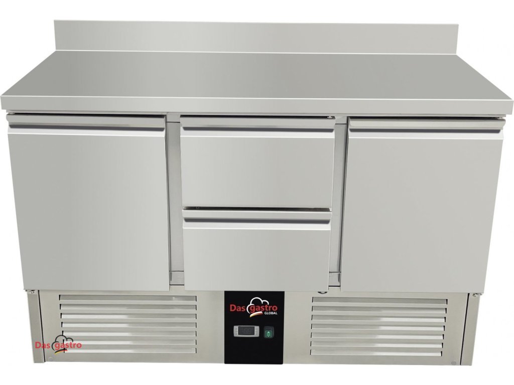 Chladiaci stôl / prípravný stôl 1,37 mx 0,7 m - s 2 dverami a 2 šuplíky uprostred a zadným lemom