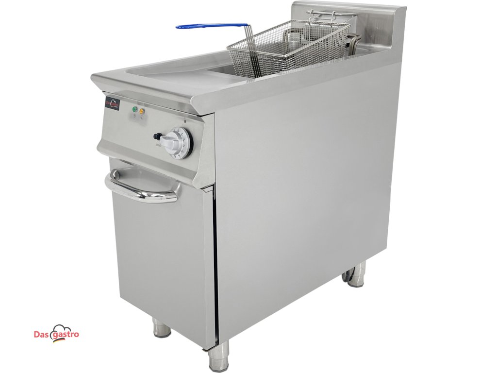 Elektrická jednodierová fritéza s podstavnou skriňou je určená pre profesionálne gastronomické prevádzky, ako sú reštaurácie, bistra, fast foody, jedálne či prevádzky rýchleho občerstvenia. Slúži na rýchlu a rovnomernú tepelnú prípravu vyprážaných pokrmov – hranolčekov, mäsa, zeleniny, rýb alebo polotovarov. Vďaka vysokej účinnosti ohrevu a stabilnej regulácii teploty poskytuje konštantnú kvalitu fritovaných pokrmov aj pri vysokom zaťažení.
