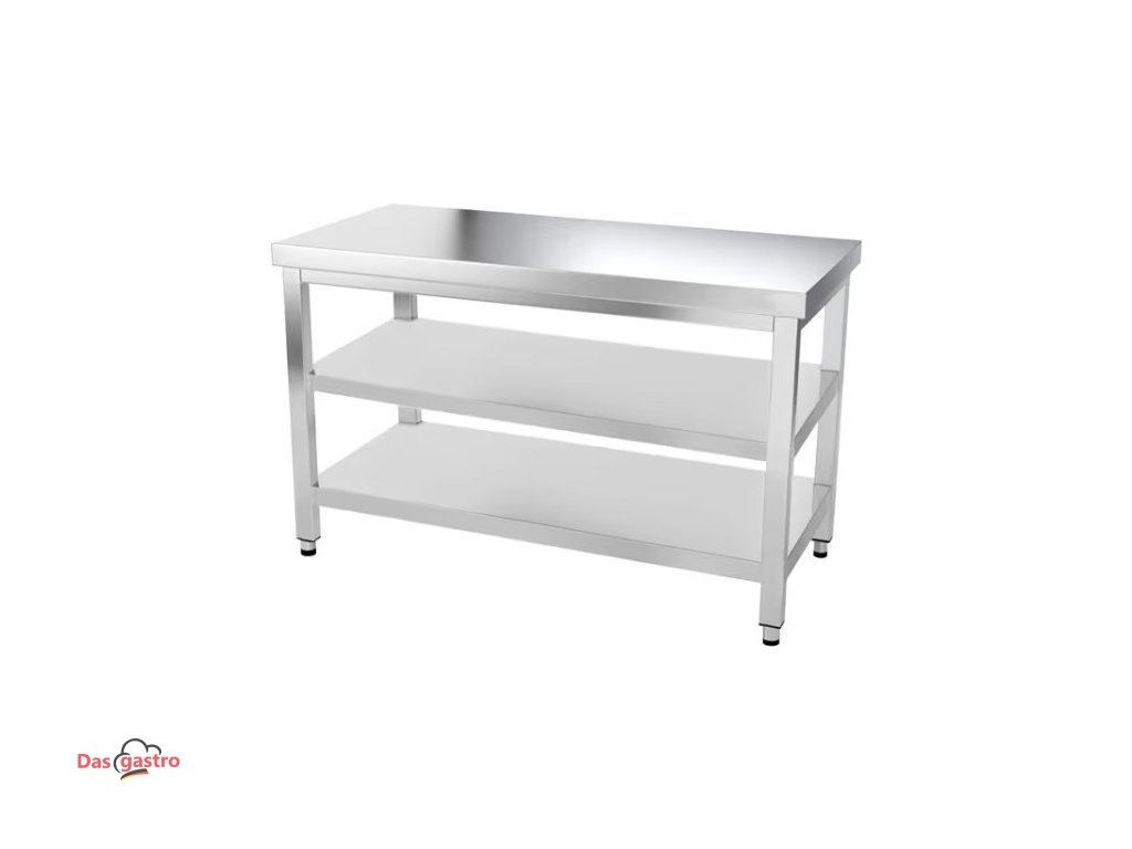 Nerezový pracovný stôl pre profesionálne prevádzky. Stabilná konštrukcia, ľahká údržba a praktická spodná polica z neho robia ideálnu voľbu do gastro kuchýň, prípravní i zázemia.