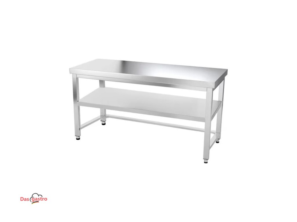 Nerezový pracovný stôl so spodnou policou a trnožou bez zadného lemu - 1200 x 600 x 870 mm