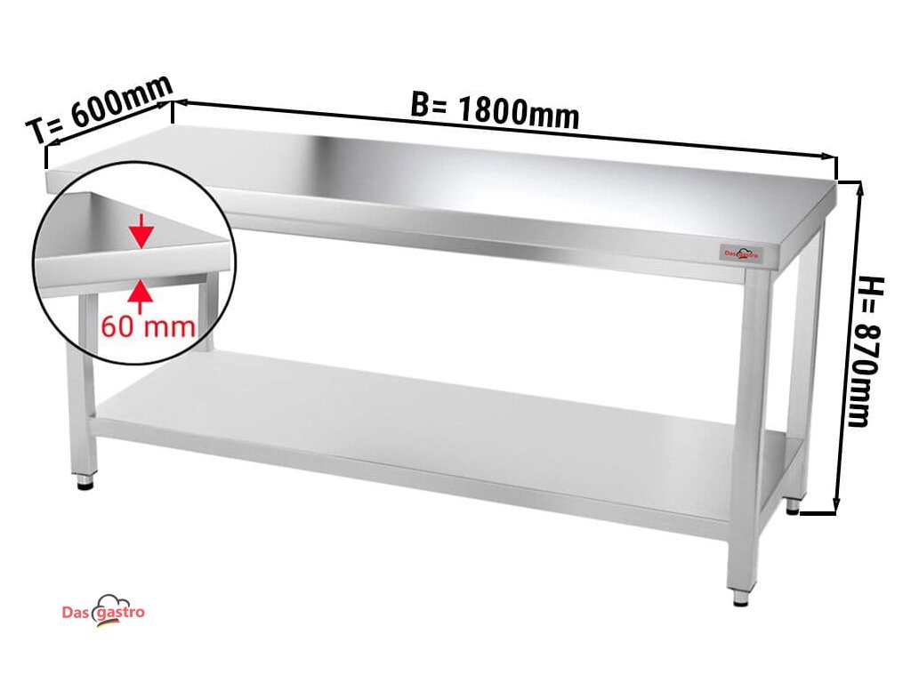 Nerezový pracovný stôl so spodnou policou bez zadného lemu - 1,8 x 0,6 m