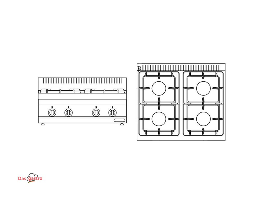 Plynový sporák - 4 horáky (14 kW) so zapaľovacím plameňom - vrátane spodnej konštrukcie s 2 dvierkami