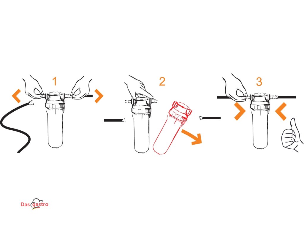 - Filtr se připojuje k vodovodnímu potrubí pomocí systému rychlého připojení.